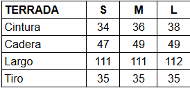 Pantalon del S al L equivalencia de talles 38 / 40 / 42